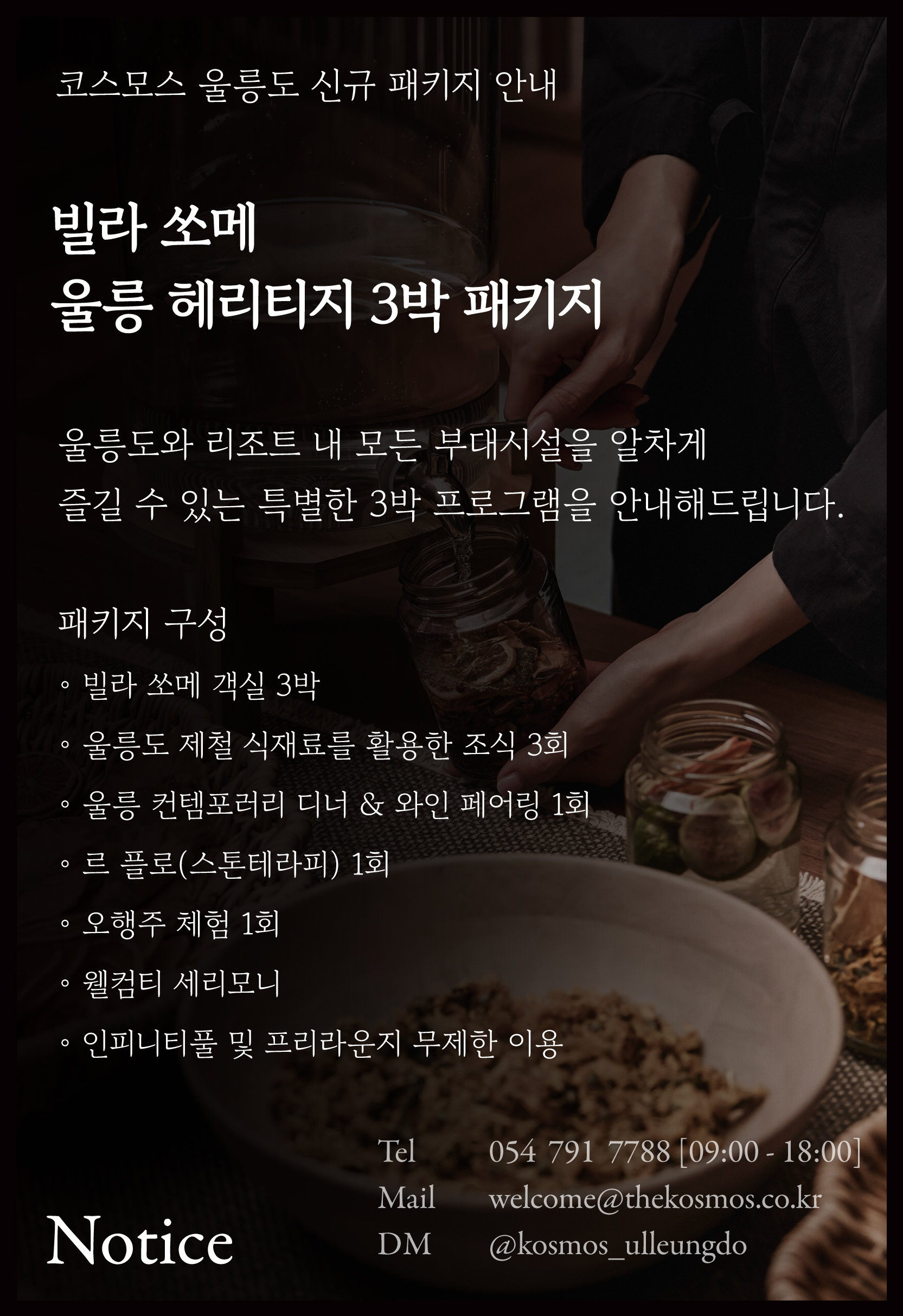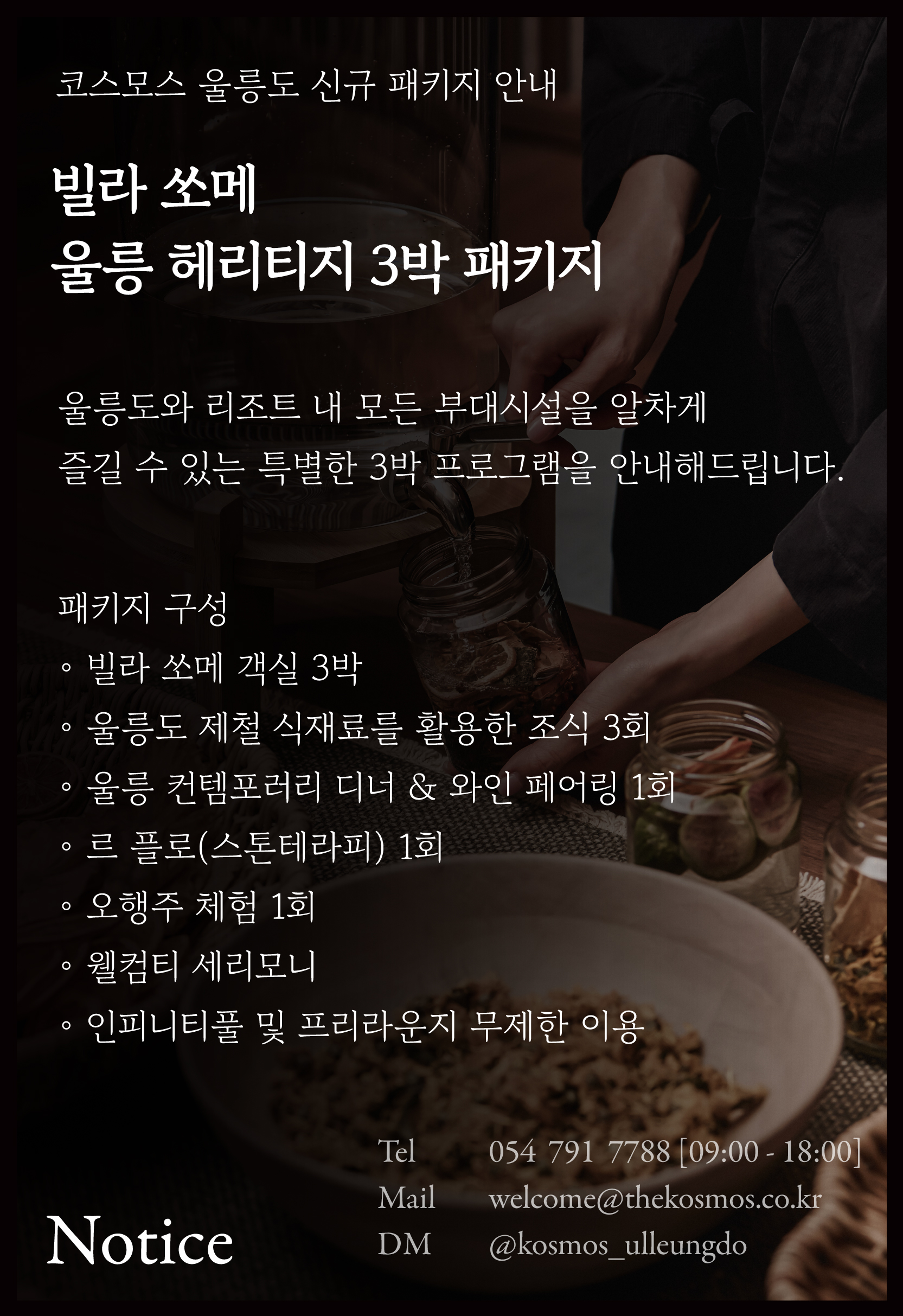 코스모스 울릉도는 기운생동한 환경과 음양의 조화를 담은 서비스를 통해