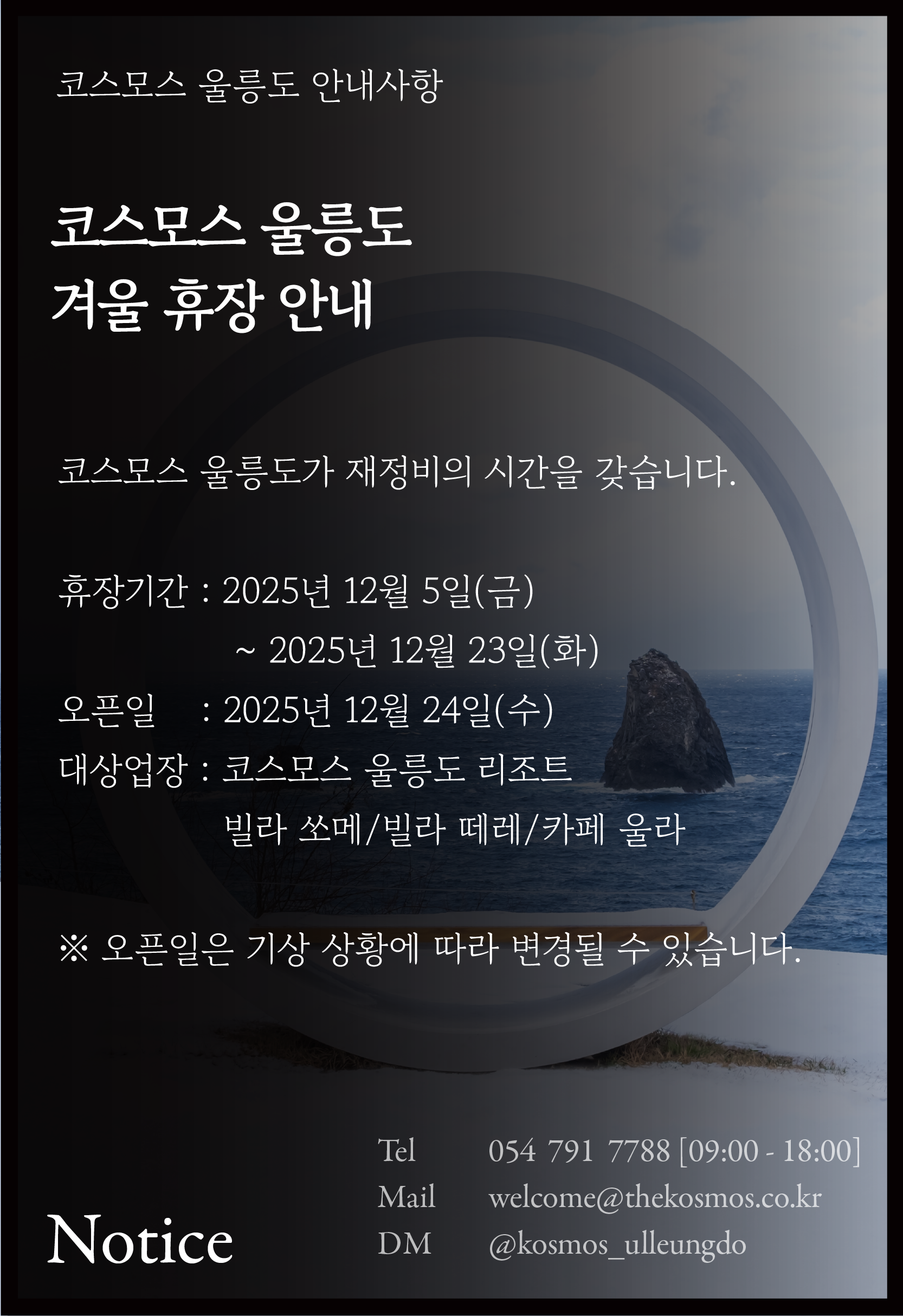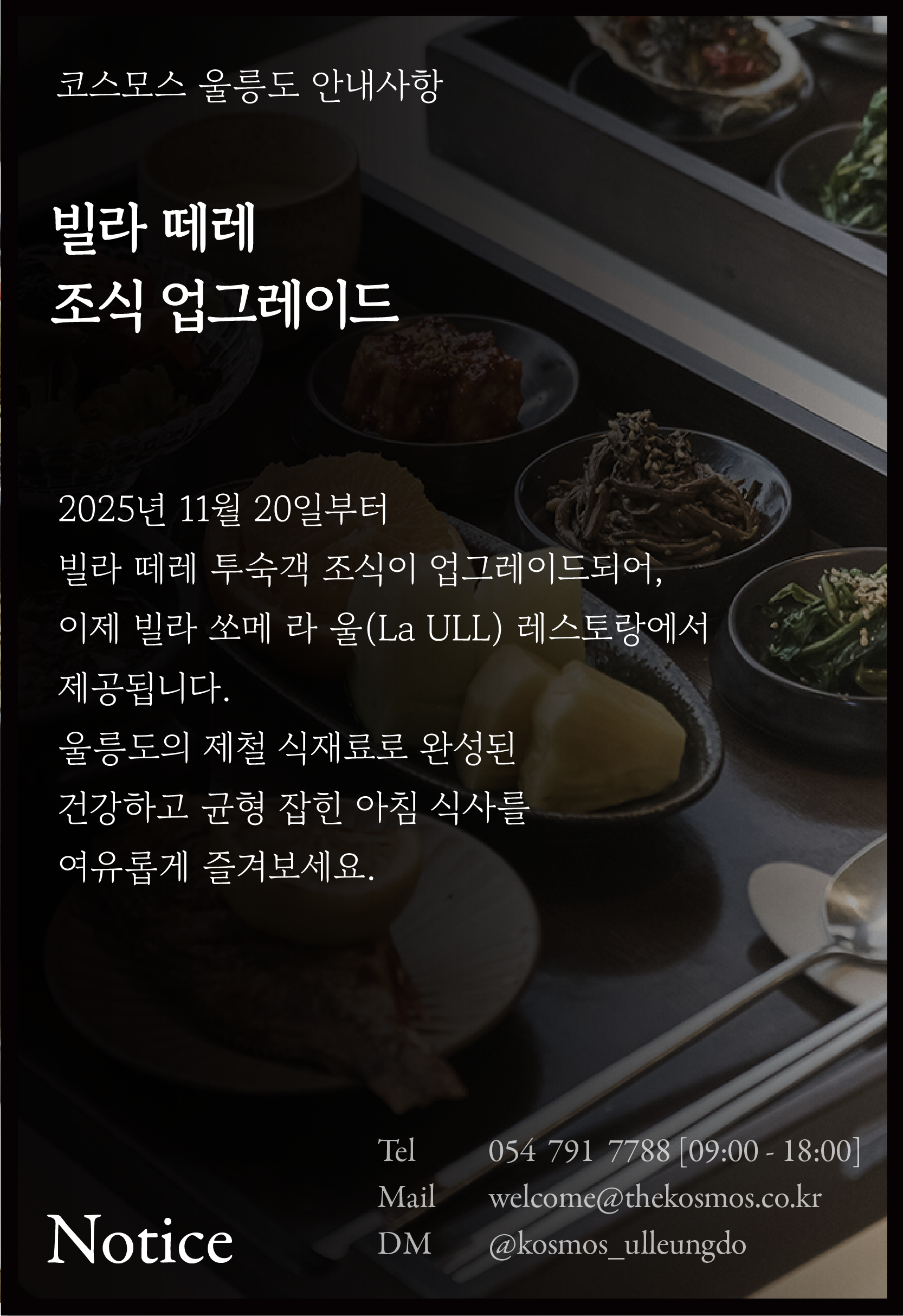 코스모스 울릉도는 기운생동한 환경과 음양의 조화를 담은 서비스를 통해