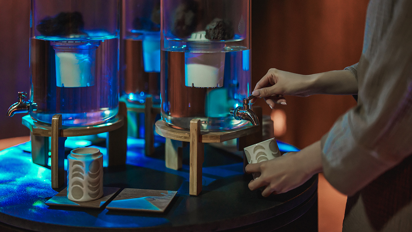 7. 플로 라운지로 나와 용출수로 수분을 채우세요.